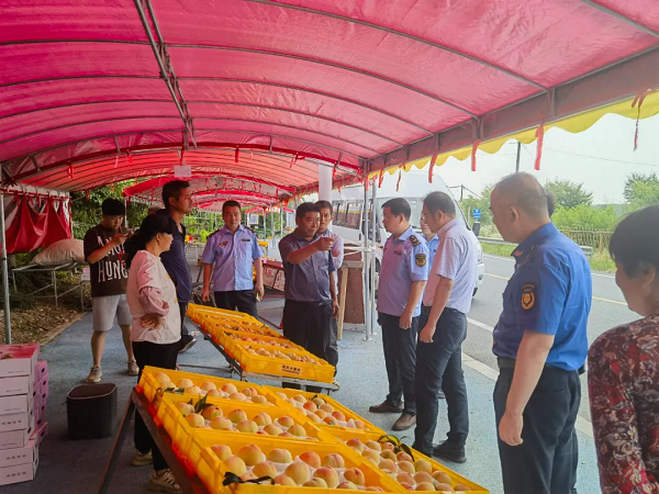 6月下旬,一个寻常的晚上9点,无锡市惠山区阳山水蜜桃桃农协会和当地市场监管、公安、城管、村委会等部门人员组成的联合工作组正在进行“夜查”走访。