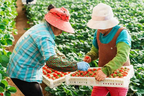 辽宁省东港市,农户在种植基地采摘东港草莓。受访者供图