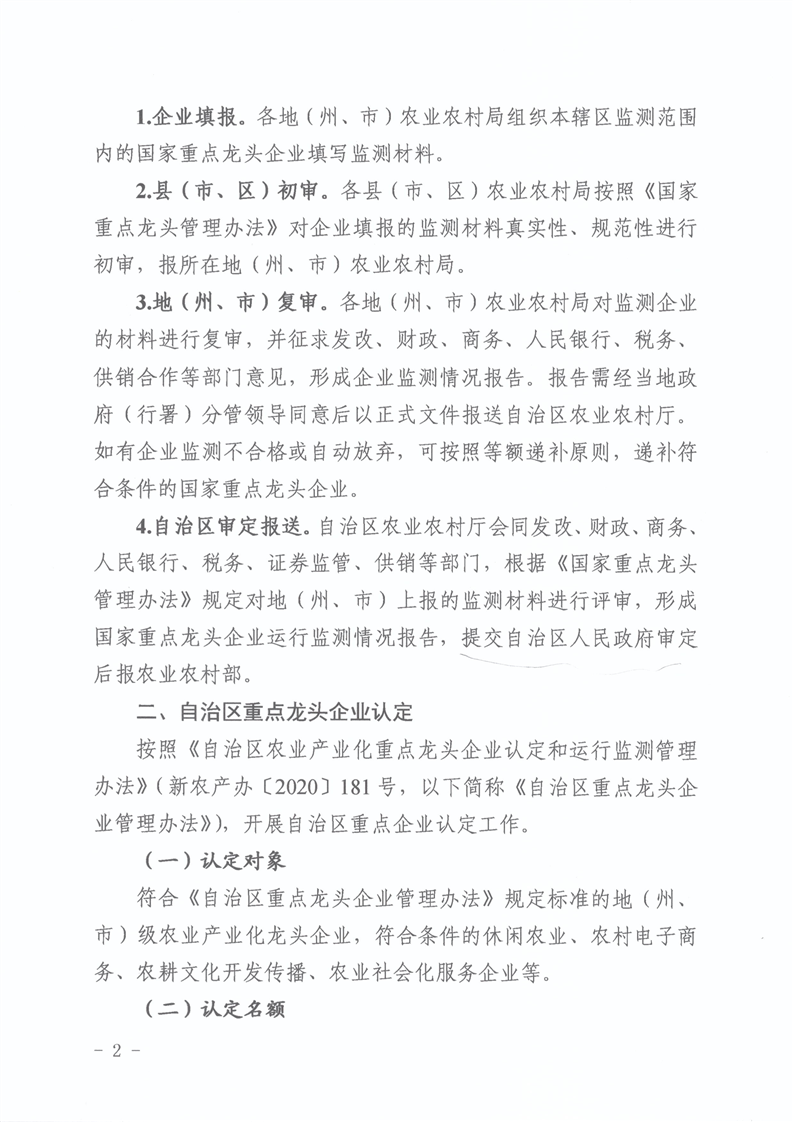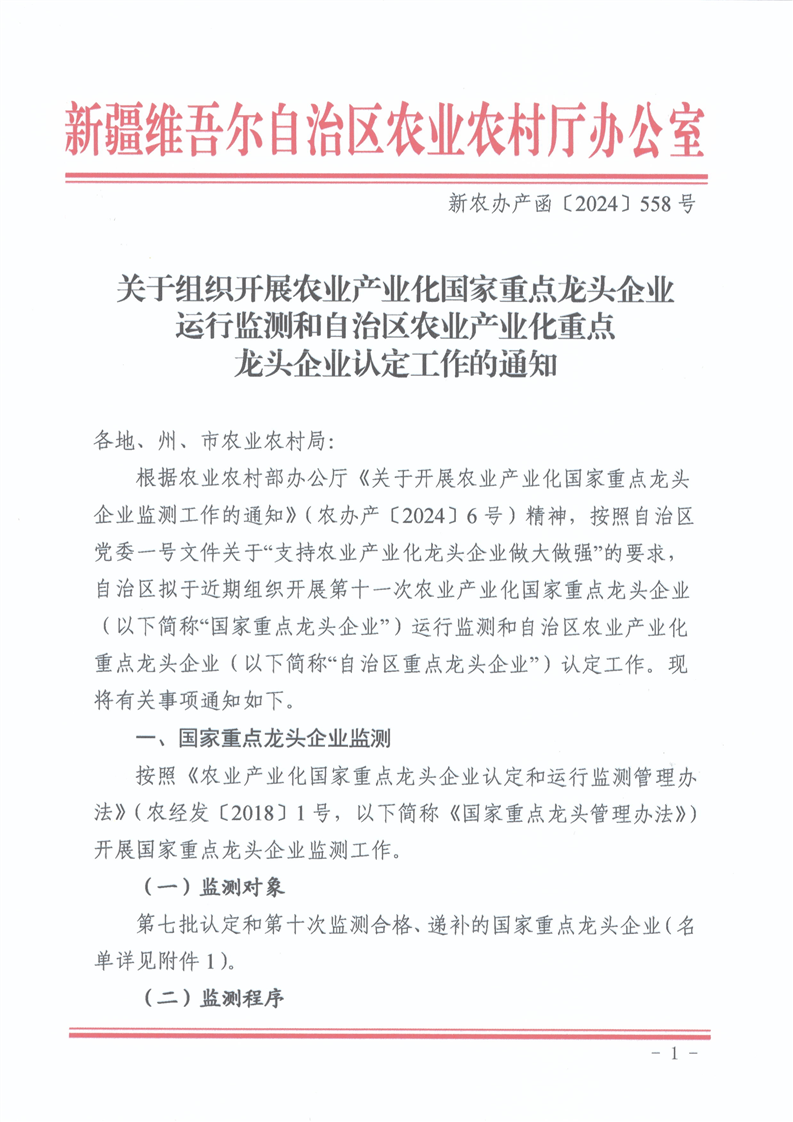 关于组织开展农业产业化国家重点龙头企业运行监测和自治区农业产业化重点龙头企业认定工作的通知(1)